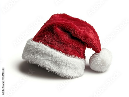 A classic red Santa hat with a fluffy white pompom and trim, symbolizing the festive Christmas holiday spirit, isolated on a plain white background.