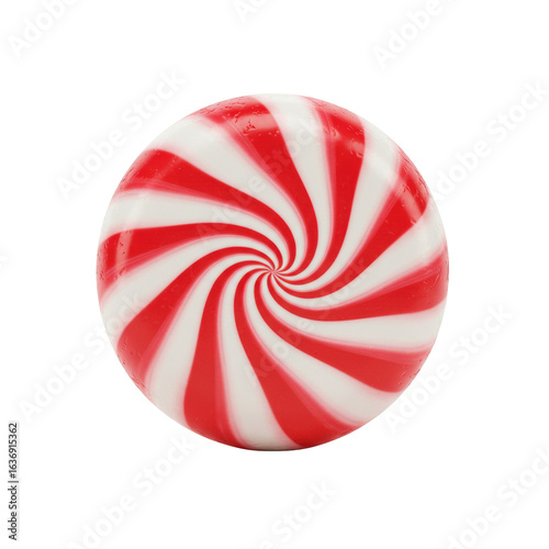 A classic, round peppermint swirl Starlight Mint with vibrant red and white spiral stripes, smooth and glossy, isolated on a transparent background with clean, bright studio lighting, commercial