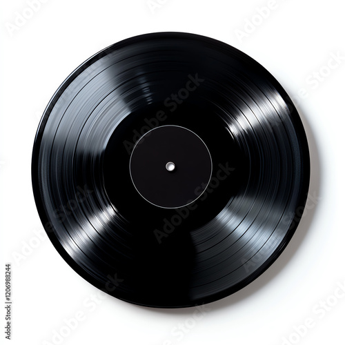 A classic vinyl record viewed from above, emphasizing its black surface and grooves, ideal for music lovers and collectors.