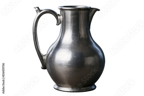 A classical vintage metal pitcher, shining with reflected light, showcased on a transparent, white background, png