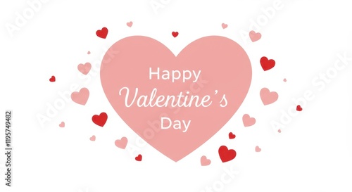 A clean and minimalist design featuring the Happy Valentine's Day in elegant typography over a large pastel pink heart