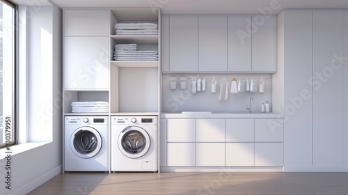 A clean and organized laundry room with essential appliances