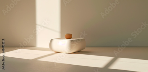 A clean bowl on a table with beige window shadow. banner