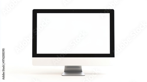 A clean desktop mockup showcases a blank monitor on a white backdrop, ideal for designs