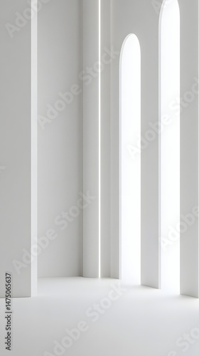 A clean minimalist interior space with dramatic lighting and architectural details creating a serene and elegant atmosphere