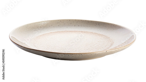 A clean white ceramic plate sits empty, isolated on a bright white background