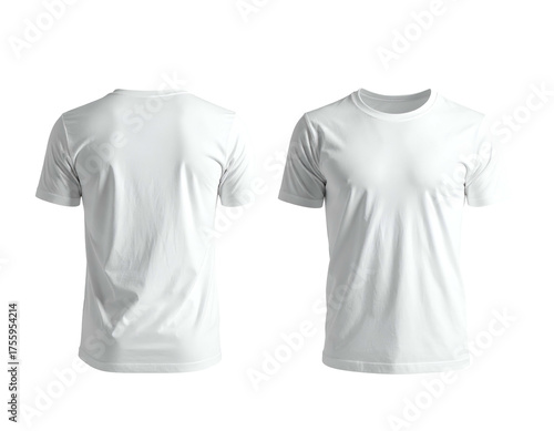 A clean, white crew-neck t-shirt presented from both front and back angles, ready for design