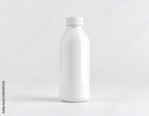 A clean white plastic bottle mockup for drink or dairy product packaging. Blank container with cap isolated on a simple white background.