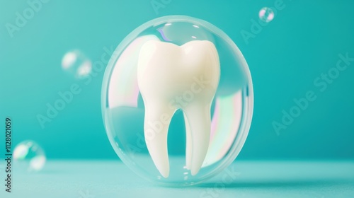 A clean white tooth encased in a transparent bubble against a soft blue background, symbolizing dental protection and hygiene.