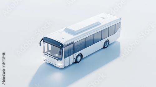 A clean, white transit vehicle. Front view, casting shadow. Clean studio shot