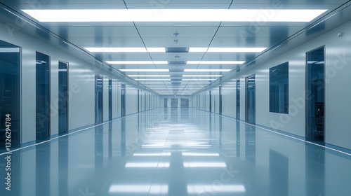 A cleanroom equipped with advanced machinery operates in a controlled environment for the assembly of smartphones. No personnel are present, emphasizing precision and technology