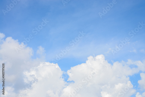 A clear blue sky filled with fluffy white clouds on a bright sunny day