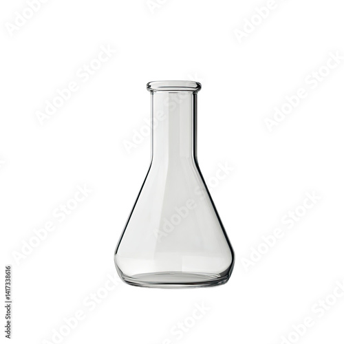 A clear, empty conical flask, ideal for laboratory use in chemistry experiments.