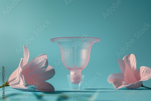 A clear glass vase sits atop a table, surrounded by fresh flowers