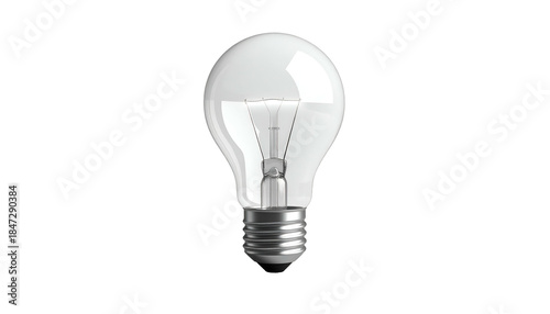 A clear, illuminated light bulb against a stark black background, showcasing its inner filaments