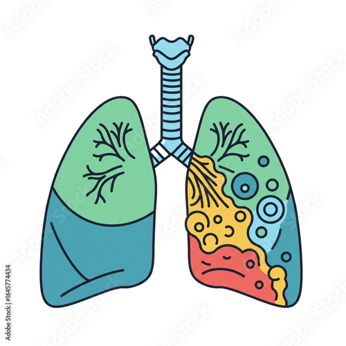 A clear medical illustration contrasting a healthy human lung with a diseased lung, depicting various pathological conditions, symptoms, and the critical impact on respiratory health.