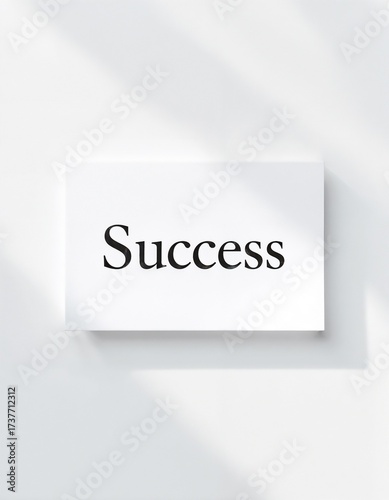 A clear white card displays the word success in bold letters. This straightforward design highlights the importance of positivity and motivation in achieving goals, perfect for a workspace.