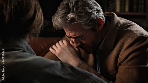 A close friend supports a man in depression.