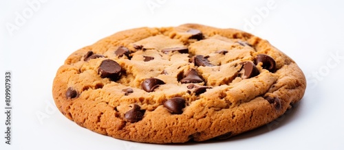A close up copy space image of a delicious chocolate chip cookie isolated on a white background tempting the taste buds of breakfast lovers