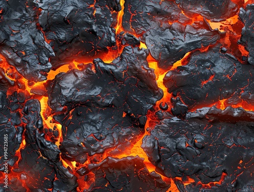 A close up of a black lava rock with red glowing lava
