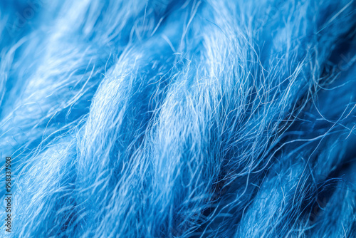 A close up of a blue yarn with a fuzzy texture.