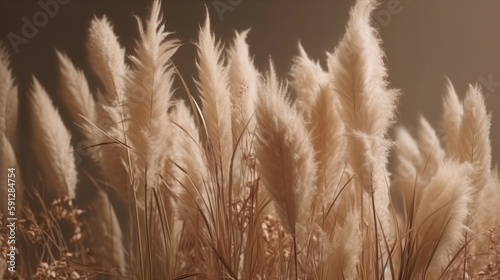 A close up of a field of tall grass with a blurry sky in the background and a sunbeam in the middle of the foreground. Generative ai
