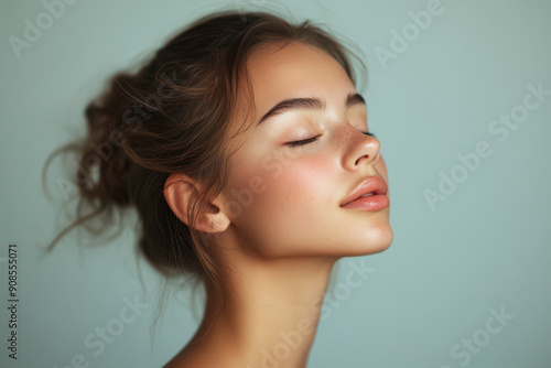 A close up of a girl's face with her eyes closed