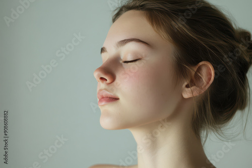 A close up of a girl's face with her eyes closed