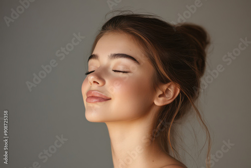 A close up of a girl's face with her eyes closed