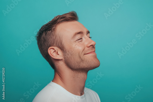 A close up of a man's face with her eyes closed