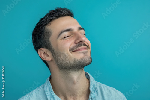 A close up of a man's face with his eyes closed