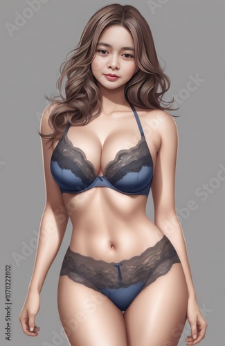 a close up of a woman in a blue lingersuit posing