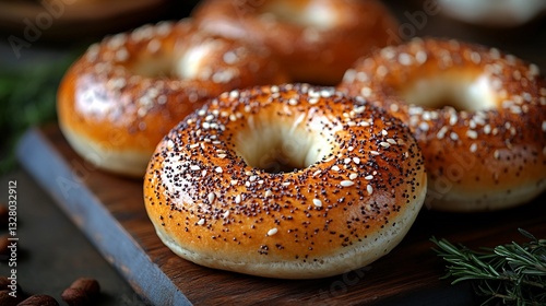 A Close Up Of Bagels With Sesame Seeds And Nuts On A Wooden Board (AI Image)