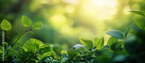 A close up of lovely green leaves set against a blurred background of greenery with sunlight in a public garden park This is an example of landscape ecology and provides copy space for wallpaper an