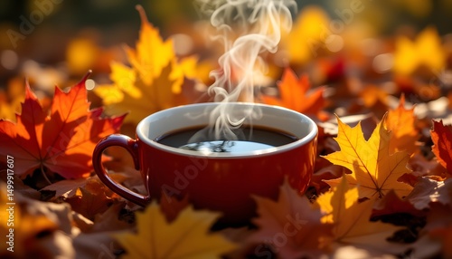 A close up perspective highlights a steaming dark beverage held within a ceramic mug, the heat visibly rising and distorting the crisp air above