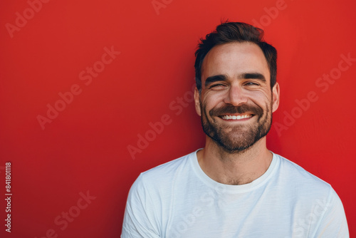 A close up portrait of a young man with a subtle smile