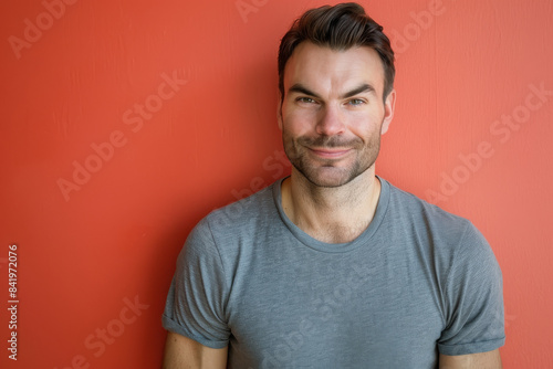 A close up portrait of a young man with a subtle smile