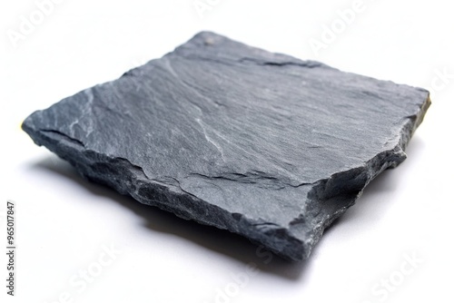 A close up shot of a black slate rock isolated on a white background, up, backdrop, isolated, rock, organic, background, surface, monochrome, solid, isolated, close, dark, detail, stone