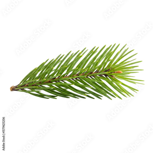A close up shot of a single evergreen branch with needles against a plain black background isolated well on transparent background