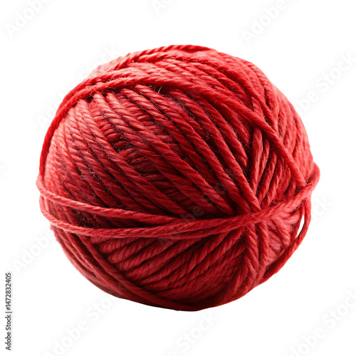 A close up shot of a vibrant red ball of yarn isolated on transparent background