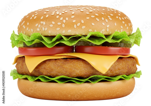 A close up view of a burger with lettuce tomato and cheese inside