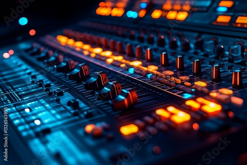 A close up view of a professional audio mixing console