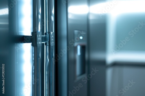 A close up view of a refrigerator in a room. Versatile image for home organization or kitchen design