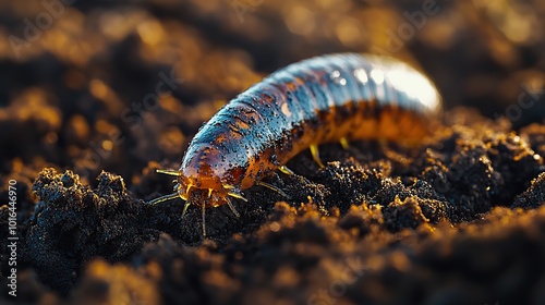 a close up view of fertile soil rich in organic matter showcasing the principles of regenerative agriculture,a live earthworm aiding in soil health and sustainability.create by F.a