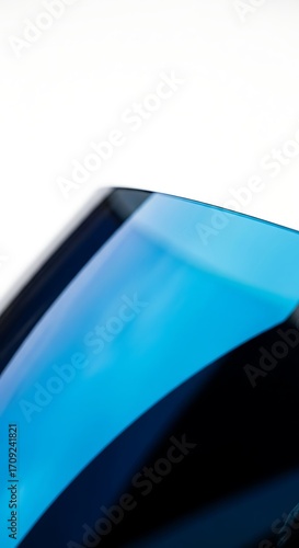 A close-up abstract view of a curved, glossy blue surface against a white background.