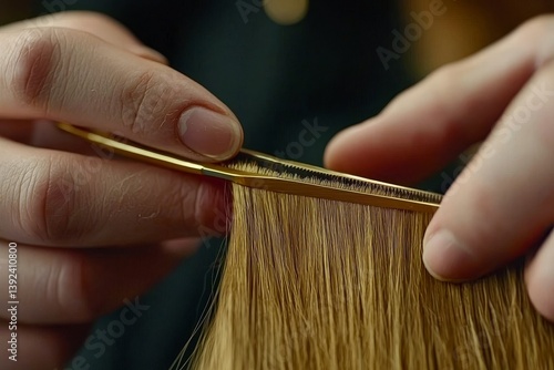A closeup captures a professional hairdresser in the process of cutting a woman's hair in a salon