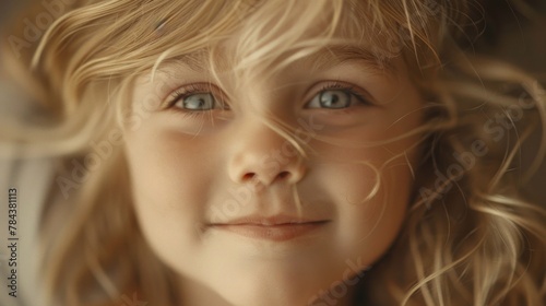 A close-up image of a child with blonde hair. Perfect for family and parenting themes