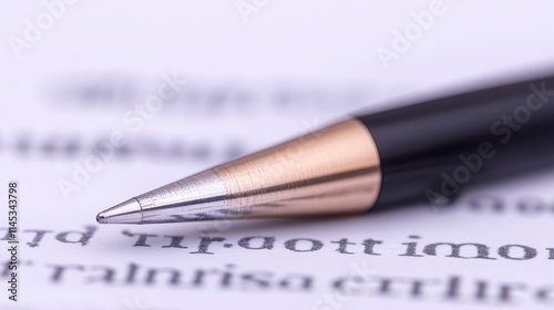 A close-up image of a pen poised above printed text, highlighting its precision and writing tools.