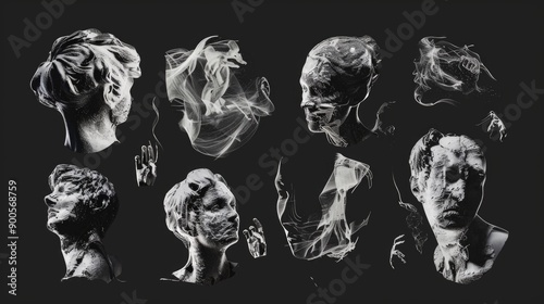 A close-up image of a person's face in monochrome tones, focusing on the facial features