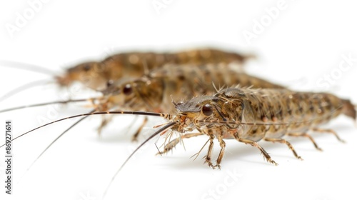 A close-up image of two small bugs sitting on a white surface, great for use in science or educational illustrations